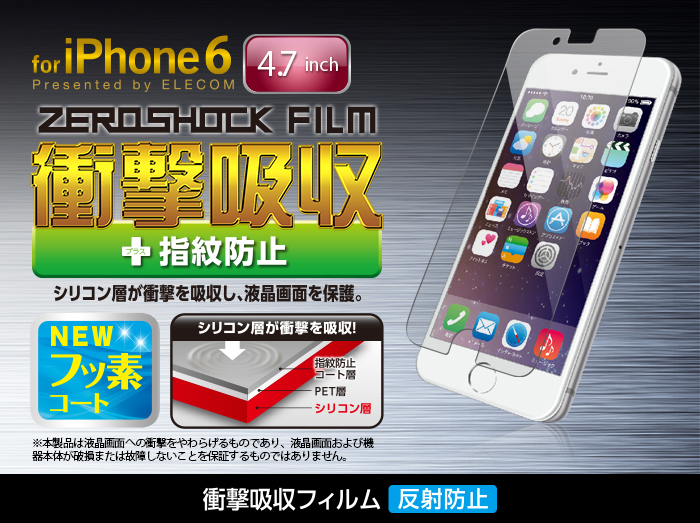 - 特厚シリコン層が衝撃を吸収するiPhone 6用の衝撃吸収フィルムです。