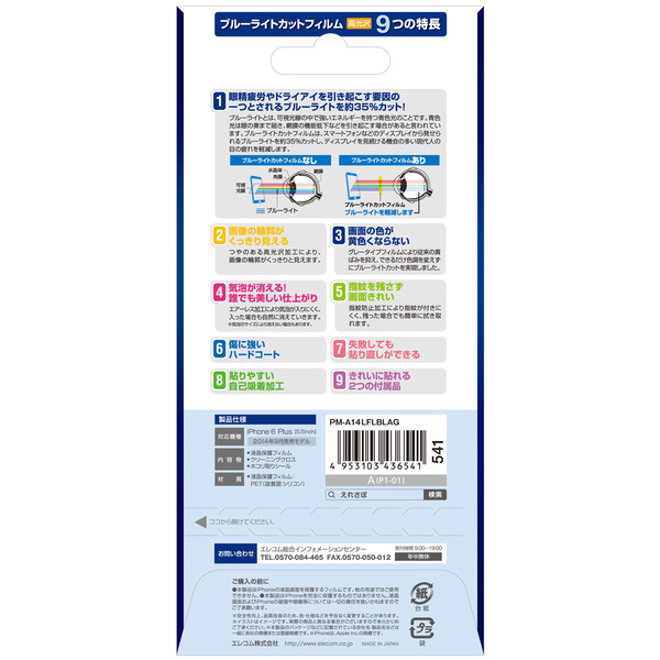 - iPhone 6 Plusの液晶画面をキズや汚れから守る、ブルーライトカットタイプの液晶保護フィルムです。