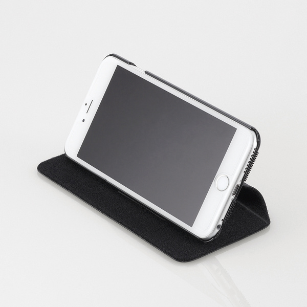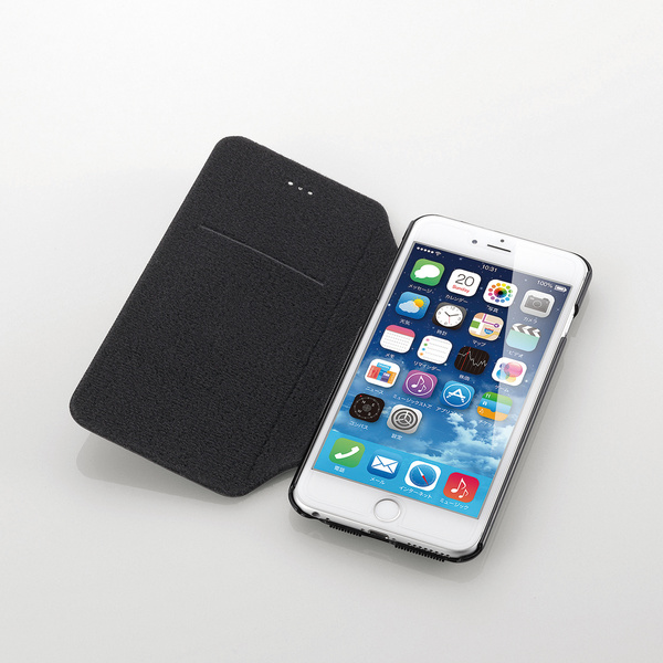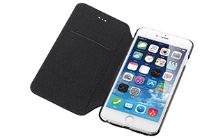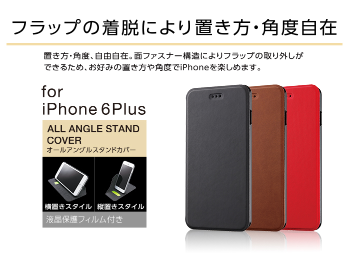 面ファスナー付きのカバーと液晶画面部分を保護するソフトレザー素材のフラップを組み合わせ、置き方・角度が自由自在にできるiPhone 6 Plus用オールアングルスタンドカバーです。フラップにはキズや汚れに強いソフトレザー素材を使用しています。また、ソフトレザーの上質な質感が手に心地よくなじみます。