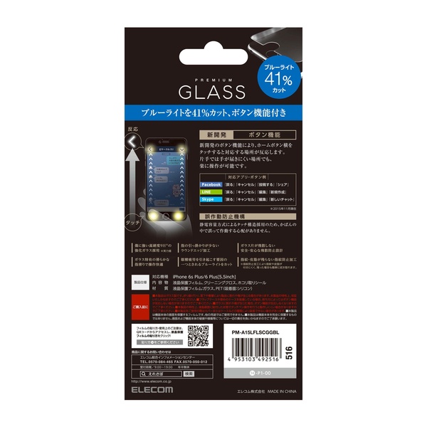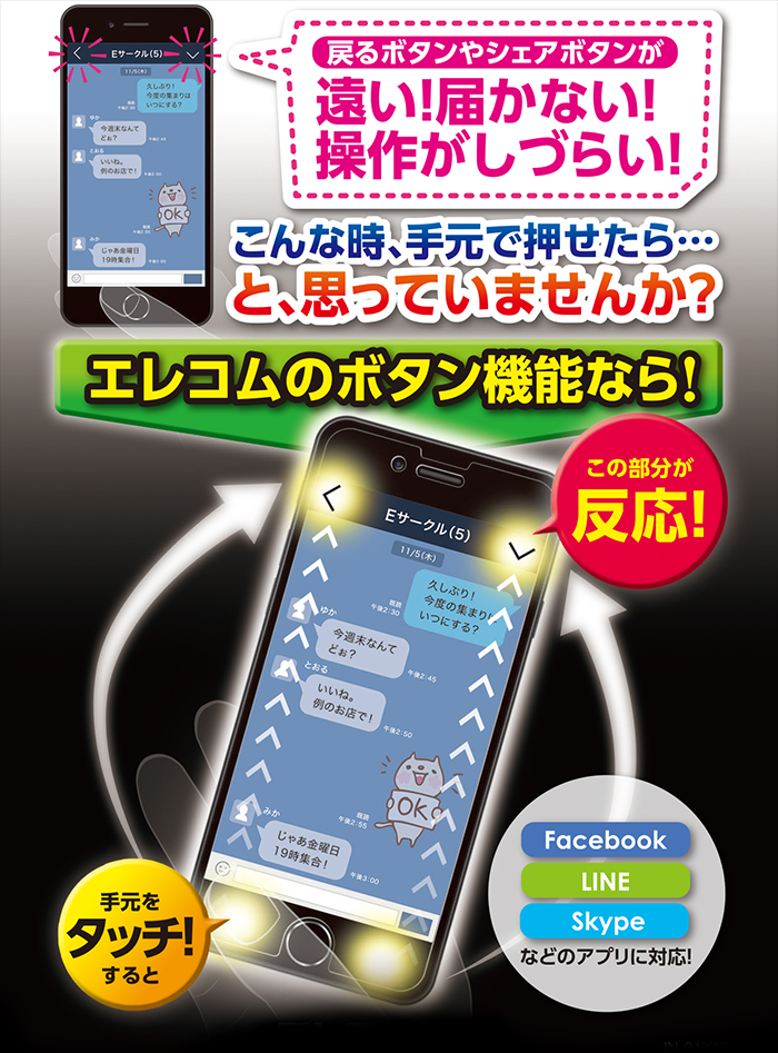 - 「Facebook」、「LINE」、「Skype」などのアプリボタンを手元で押せるショートカット機能付きリアルガラスフィルムです。