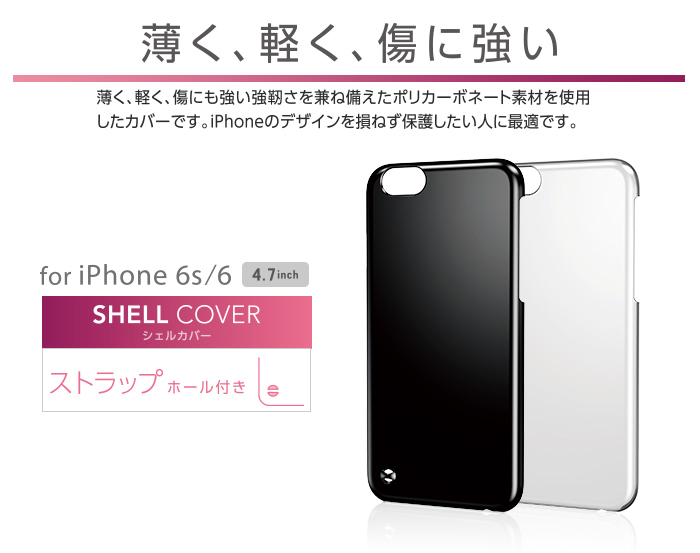 iPhoneにぴったりフィットしてキズや汚れからしっかり守るポリカーボネート製のスリムなシェルカバーです。