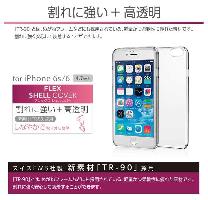 割れに強い新素材「TR-90」を採用!薄型・軽量設計でありながらしなやかな強さを実現したiPhone 6s / iPhone 6用フレックスシェルカバー。