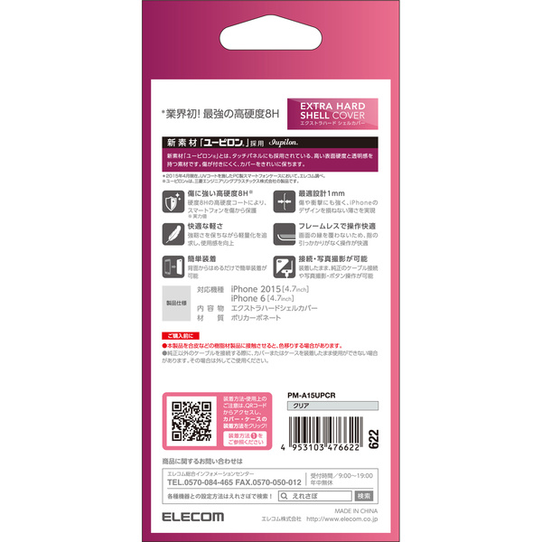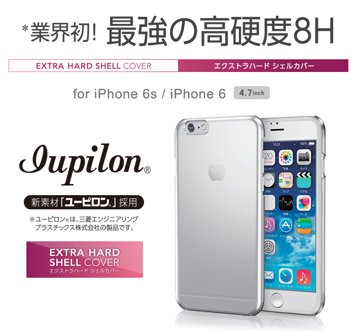新素材「ユーピロン(R)」採用!高い表面硬度(8H)と透明性を実現したiPhone 6s / iPhone 6用エクストラハードシェルカバー。