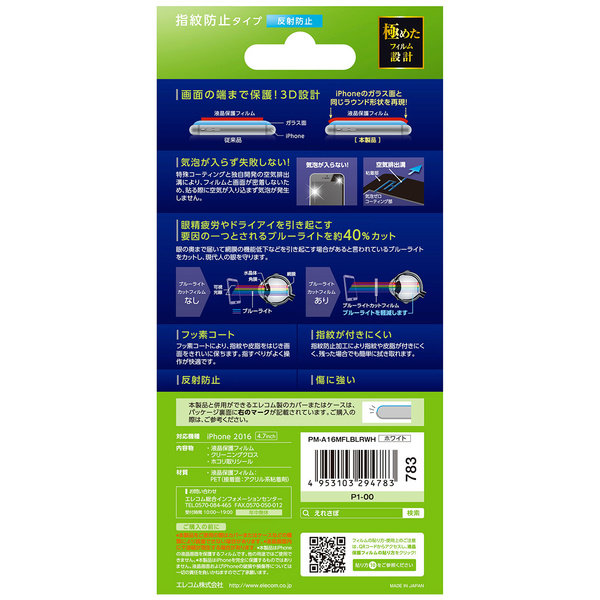iPhone 7用フルカバーフィルム/防指紋/反射防止/BLカット
