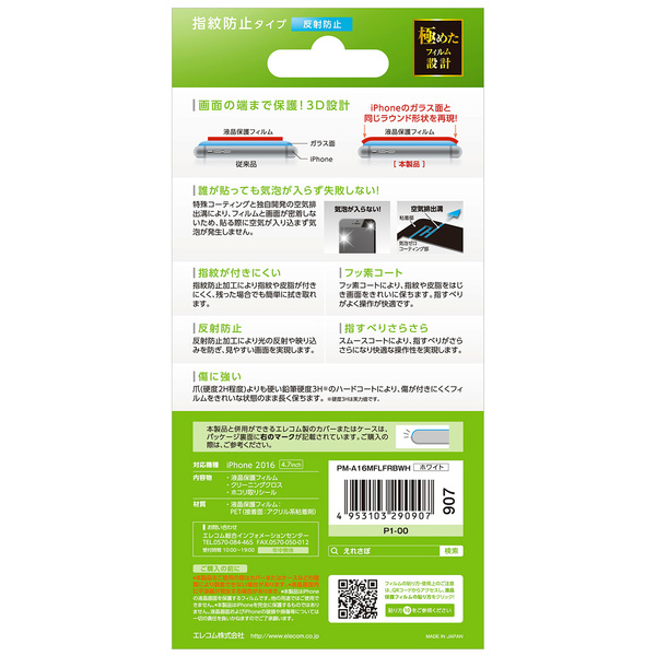 - iPhoneのラウンド部分にも特殊粘着層を採用し、液晶画面を端まで保護。気泡がぬけてきれいに貼れるiPhone 7用反射防止タイプの液晶保護フィルムです。