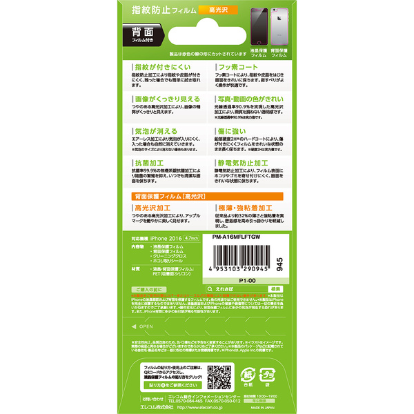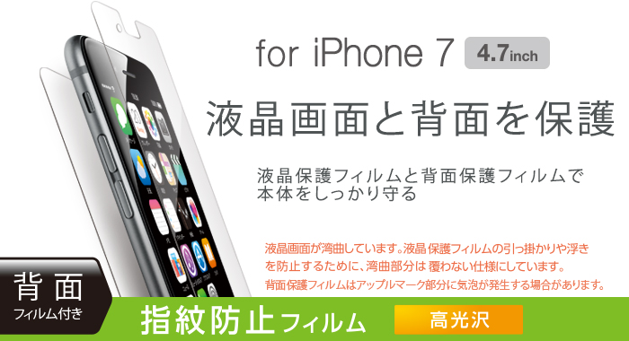 - iPhone 7の液晶画面を守り、指紋・皮脂が付きにくく、残った場合も簡単に拭き取れる指紋防止タイプの液晶保護フィルムです。背面用のフィルム付きで背面も守れます。