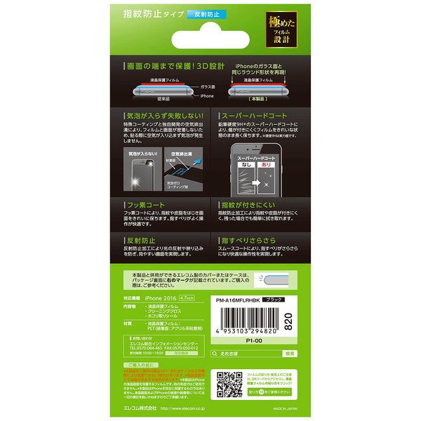 iPhone 7用フルカバーフィルム/防指紋/反射防止/硬度9H