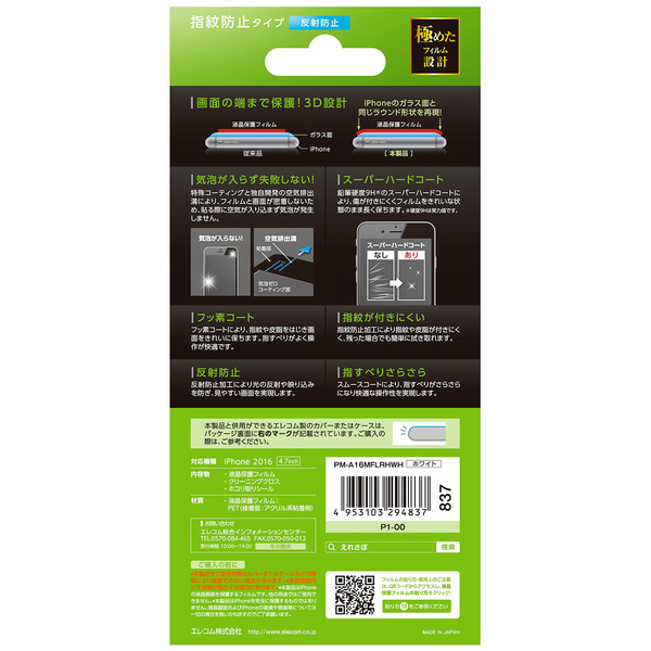 - 端末のガラス面と同じラウンド形状を再現した3D設計で、画面の端まで保護するiPhone 7用フルカバーフィルムです。