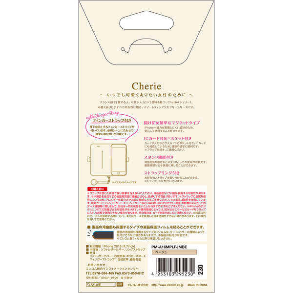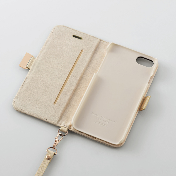 iPhone 7用ソフトレザーカバー/女子向磁石/ストラップ付