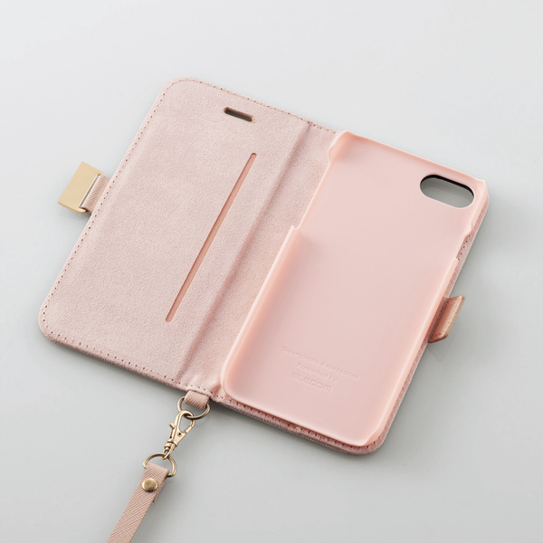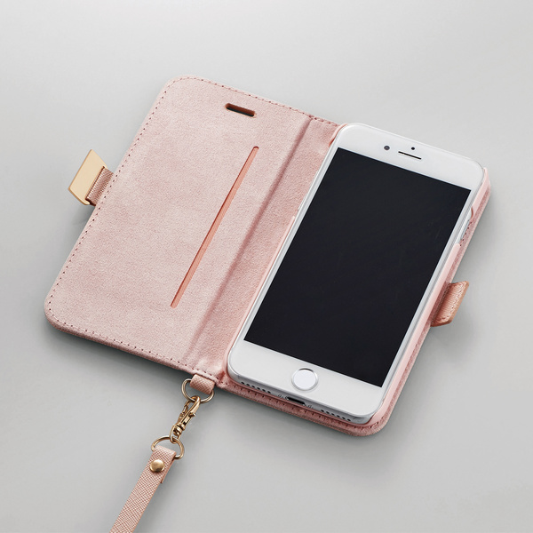 iPhone 7用ソフトレザーカバー/女子向磁石/ストラップ付