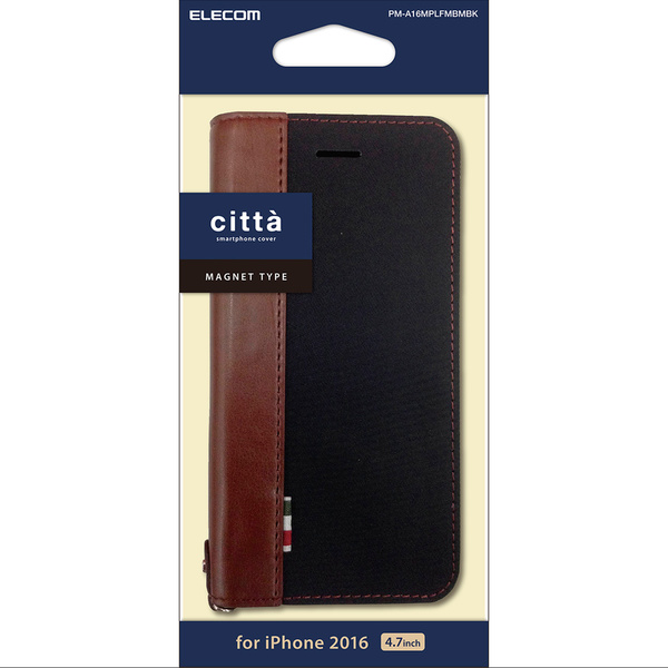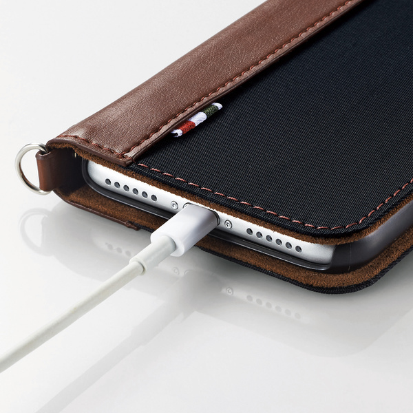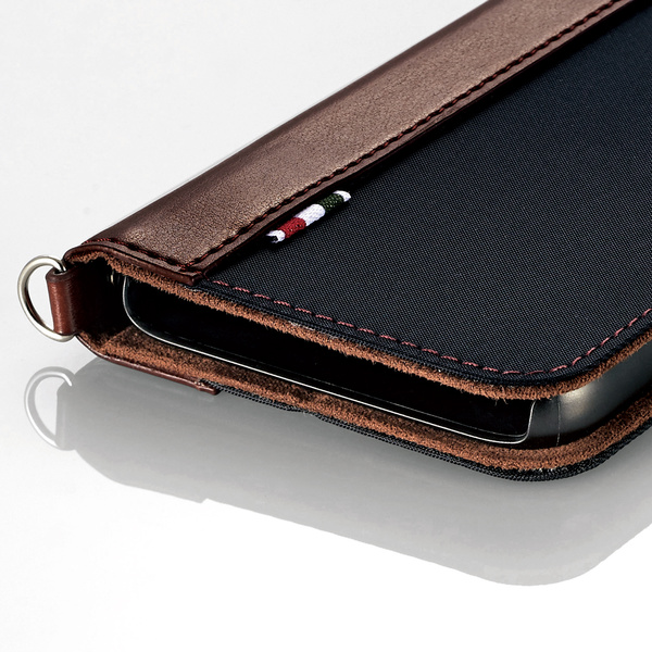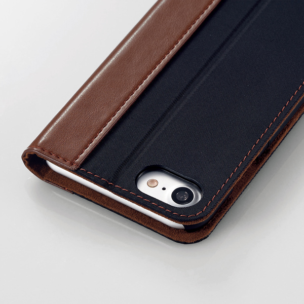 きめの細かいナイロン生地と落ち着いたソフトレザーのコンビで、ビジネスシーンでも使用できるiPhone 7用ソフトレザーカバーです。