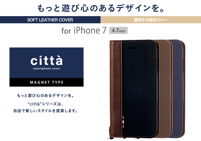 きめの細かいナイロン生地と落ち着いたソフトレザーのコンビで、ビジネスシーンでも使用できるiPhone 7用ソフトレザーカバーです。
