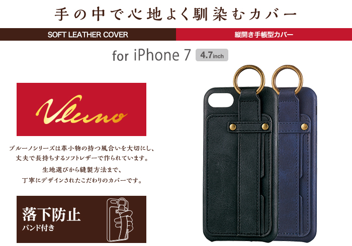 手の中で心地よく馴染むオープンタイプのiPhone 7用ソフトレザーカバーです。