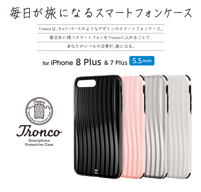 毎日が旅になるスマートフォンケース。 キャリーケースのようなデザインでしっかりとiPhoneを守るiPhone 8 Plus用キャリーバックシリーズ“TRONCO”。