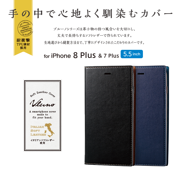 上質でなめらかな質感のCORONET社製イタリアンソフトレザーを使用し、手の中で心地よく馴染むiPhone 8 Plus用ソフトレザーカバー/イタリアン(Coronet)です。