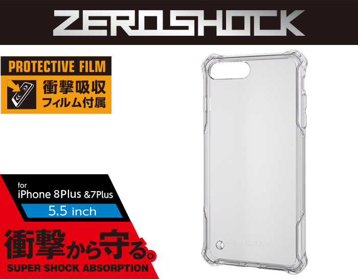 iPhoneのスタイルをそのまま活かせるクリアケースに、6つの衝撃吸収構造を兼ね備えたiPhone 8 Plus、iPhone 7 Plus用ZEROSHOCKインビジブルケースです。