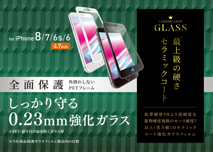 表面硬度9H(実力値)の強化ガラスを採用し、割れにくく、安心。