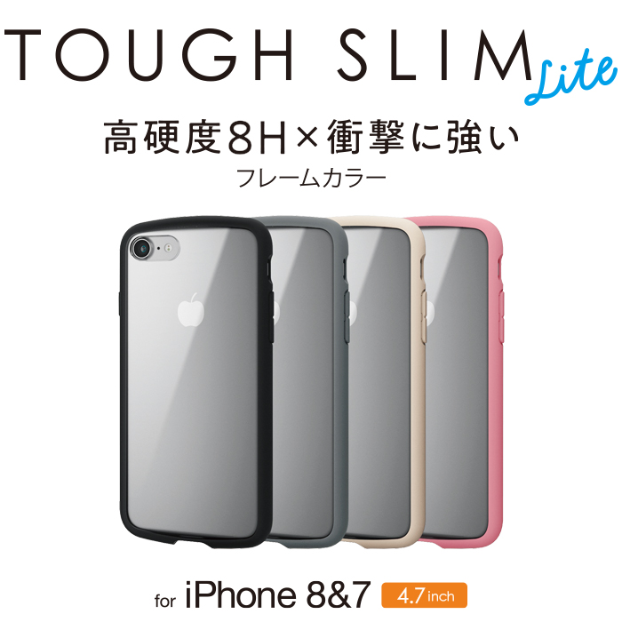 側面に弾力性のあるTPU素材を、背面に高硬度8Hのポリカーボネート素材を使用した、iPhone SE 第2世代、iPhone 8、iPhone 7用TOUGH SLIM LITEケースです。
