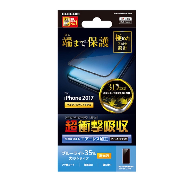 iPhone X用フルカバーフィルム/衝撃吸収/高光沢/BLカット