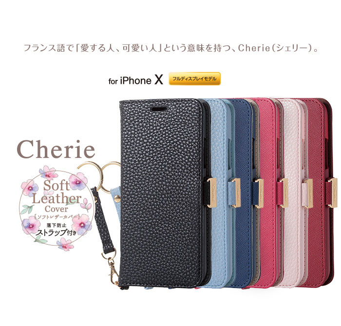 可愛すぎないシンプルなデザインが魅力のiPhone X用ソフトレザーカバー(手帳型)です。