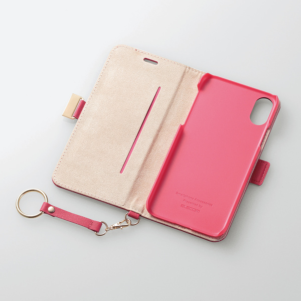 iPhone X用ソフトレザーカバー/女子向/磁石/ストラップ付