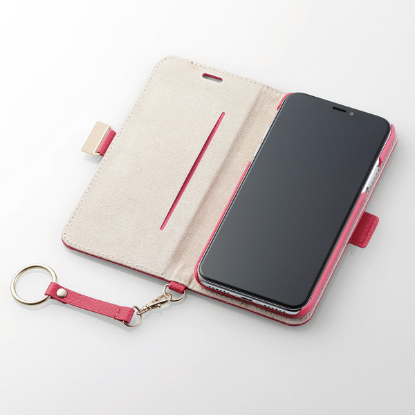 大人女子にぴったりなシンプルデザイン。キラリと光るサイドマグネットとフィンガーストラップがアクセントになるiPhone X用ソフトレザーカバー(手帳型)です。