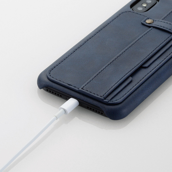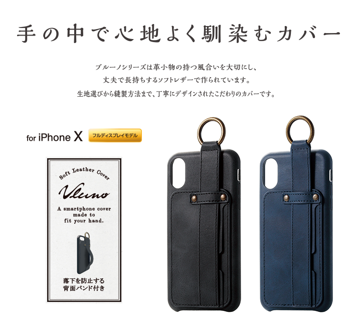 手の中で心地よく馴染むオープンタイプのiPhone X用ソフトレザーカバーです。