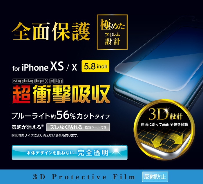 特殊構造のフィルムが衝撃を緩和し、液晶画面をキズや汚れから守る衝撃吸収フィルムです。