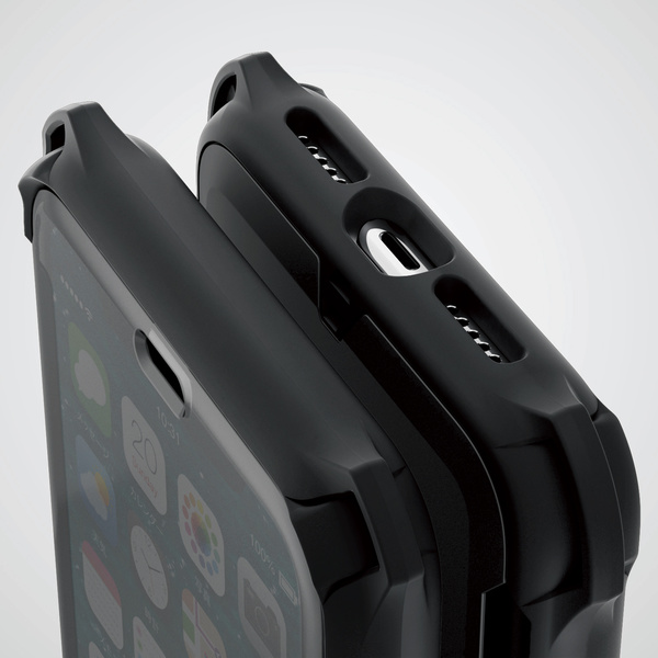 衝撃に強いTPU素材とPC素材の二重構造で、傷と衝撃から本体を守るデュアルストラクチャーを採用しています。