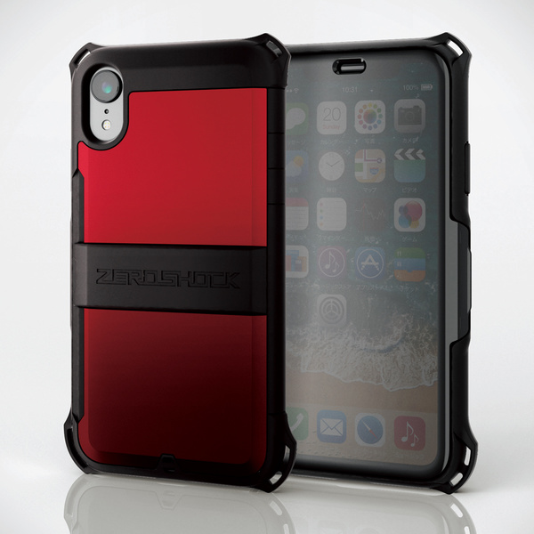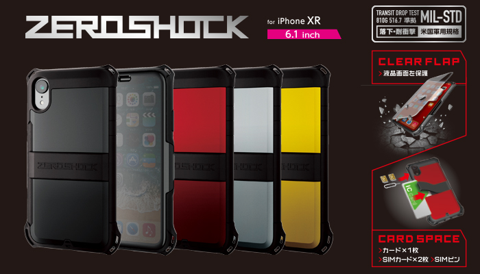 耐衝撃を誇るZEROSHOCKに、液晶画面を守るクリアフラップが付いたiPhone XR用ZEROSHOCKシールドケースです。
