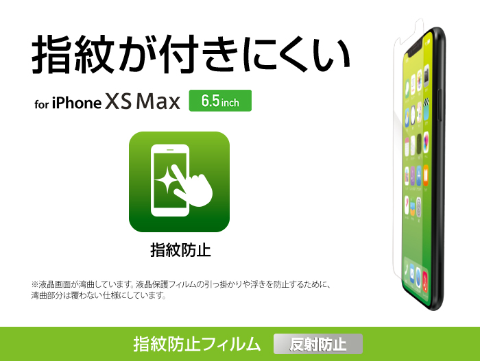 • iPhone XS Maxの液晶画面を守り、指紋・皮脂が付きにくく、残った場合も簡単に拭き取れる指紋防止タイプの液晶保護フィルムです。