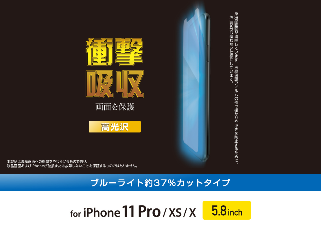 マルチペット層が衝撃を吸収するiPhone 11 Pro、iPhone XS、iPhone X用の衝撃吸収・ブルーライトカット・高光沢フィルムです。