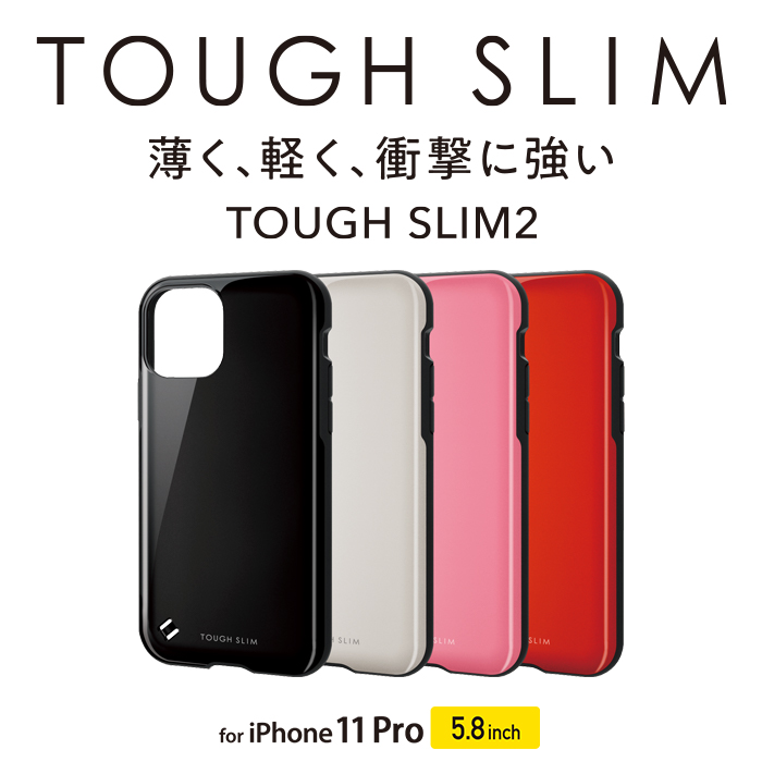 全周に配置した独自設計のエアクッションが効率的に衝撃を吸収するiPhone 11 Pro用TOUGH SLIMケースです。