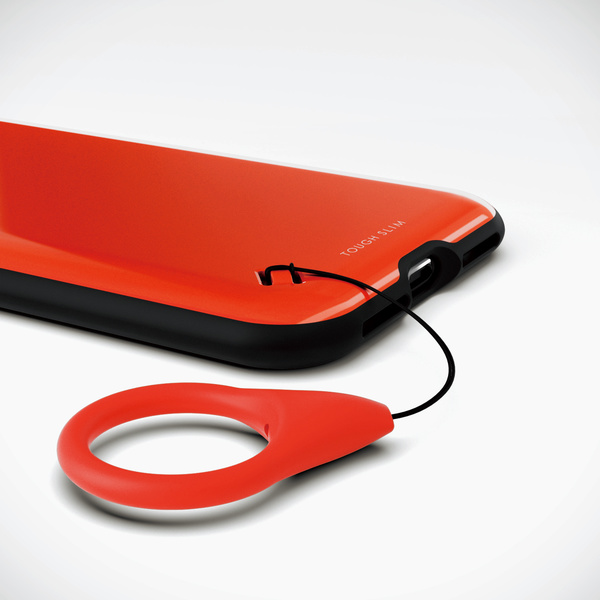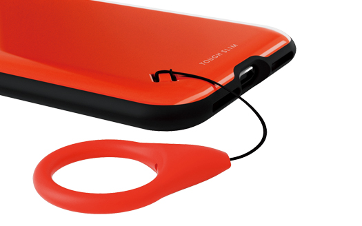 落下防止に役立つ専用シリコンストラップが付属しています。