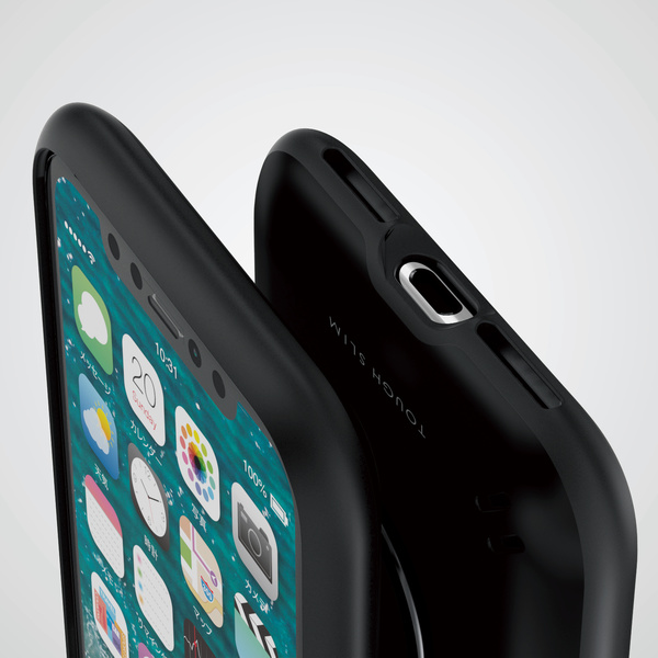 便利なフィンガーリング付きで、独自設計のエアクッションが効率的に衝撃を吸収する、薄くて軽い耐衝撃ケースiPhone2019/5.8インチ用TOUGH SLIM/リング付です。