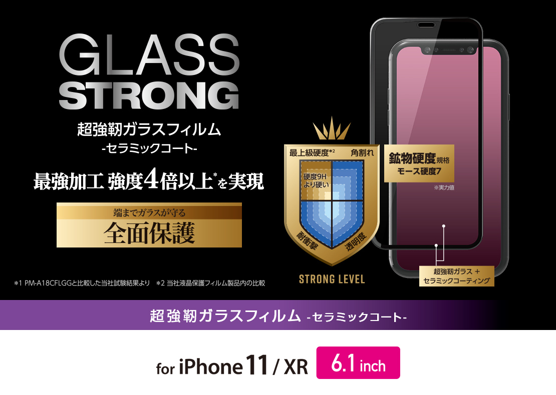 iPhone 11用フルカバーガラスフィルム/3次強化/セラミックコート