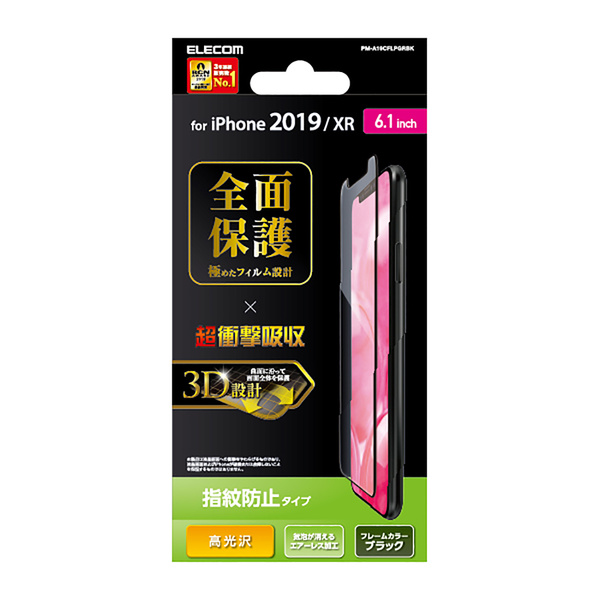 iPhone 11、iPhone XR用のラウンドした液晶画面の縁まで貼れる、衝撃吸収タイプの高光沢フィルムです。