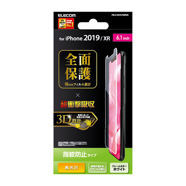 iPhone 11、iPhone XR用のラウンドした液晶画面の縁まで貼れる、衝撃吸収タイプの高光沢フィルムです。