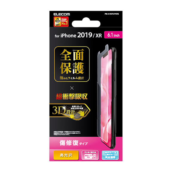 iPhone 11用フルカバーフィルム/衝撃吸収/透明/高光沢/傷リペア