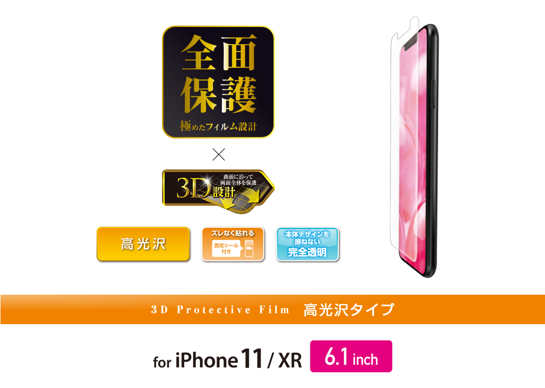 液晶画面を隅から隅まで保護できます。専用ヘラ付きで貼りつけやすく、液晶画面をしっかり守る高光沢タイプのiPhone 11、iPhone XR用液晶保護フィルムです。