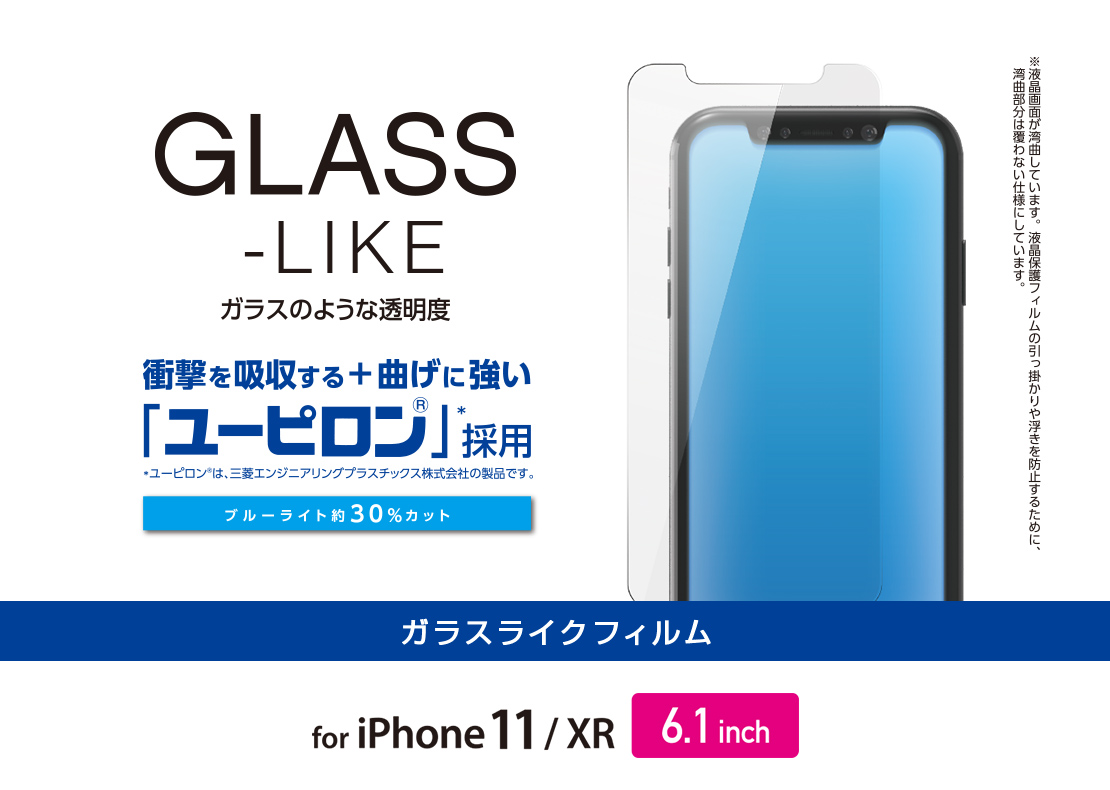 曲げに強く割れにくいフィルムです。フィルムの薄さ・しなやかさを保ちながら、高い硬度を実現しています。