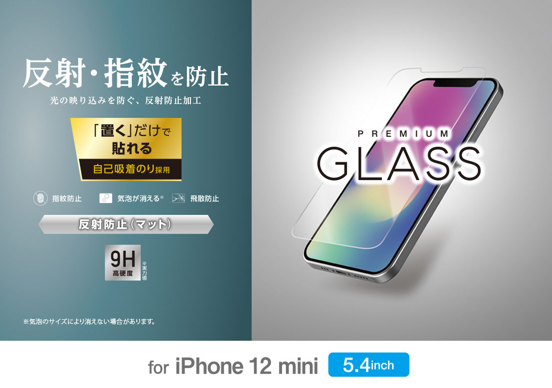 ガラス特有のなめらかな指滑りを実現する反射防止タイプのiPhone 12 mini用液晶保護ガラスです。
