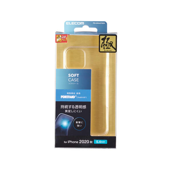 高弾性・無黄変性に優れた三井化学(株)製「フォルティモ®/TPU(熱可塑性ポリウレタン)」素材を使用した、iPhone 12 mini用ソフトケースです。