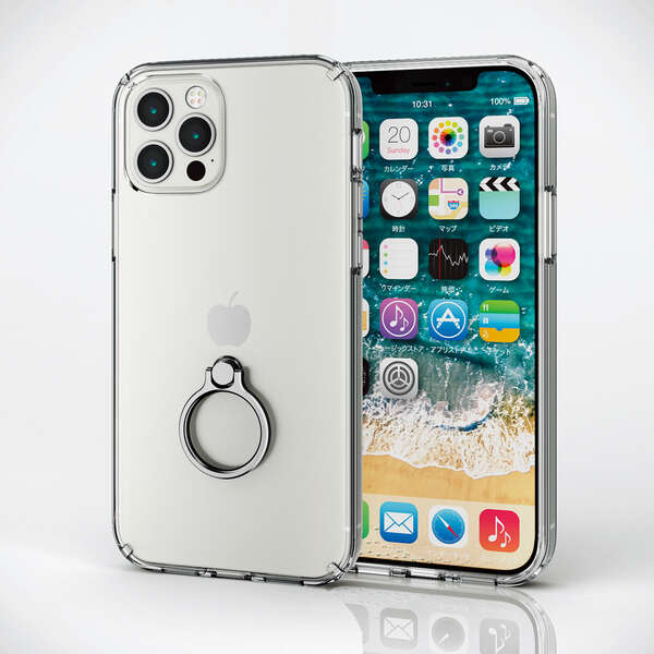 ポリカーボネートとTPU、2つの素材を使用したiPhone 12、iPhone 12 Pro用リング付耐衝撃ハイブリッドケースです。