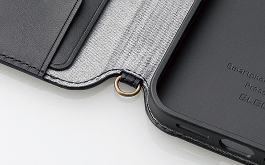 お好みのストラップが取り付け可能なストラップリングが付いています。