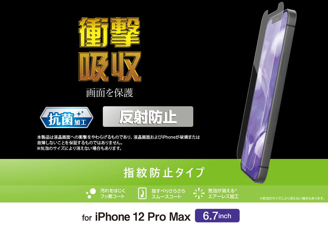 • マルチペット層が衝撃を吸収するiPhone 12 Pro Max用の衝撃吸収タイプの反射防止フィルムです。
