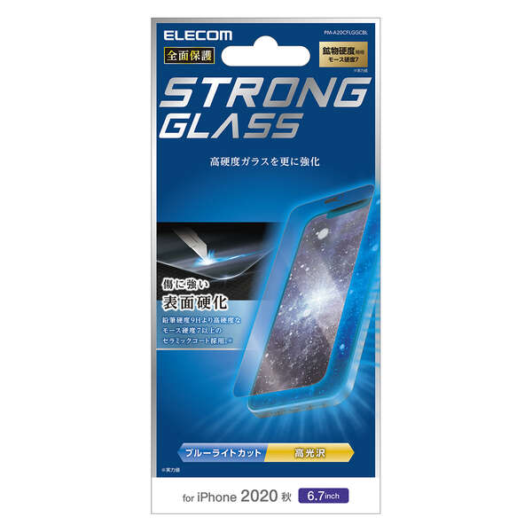 • 高硬度ガラスを更に強化した、ブルーライトカットタイプのiPhone 12 Pro Max用ガラスフィルムです。