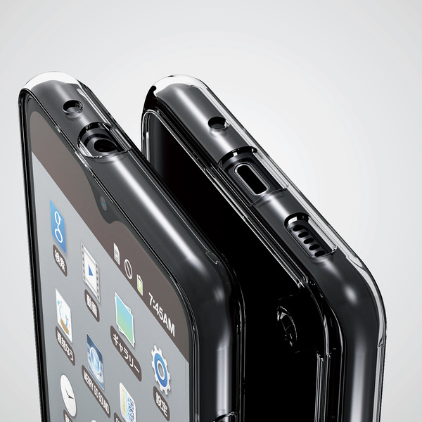 カバー背面と前面にそれぞれ凸型リブ設計を施し、背面カメラや背面、液晶画面のキズ付きを防ぎます。