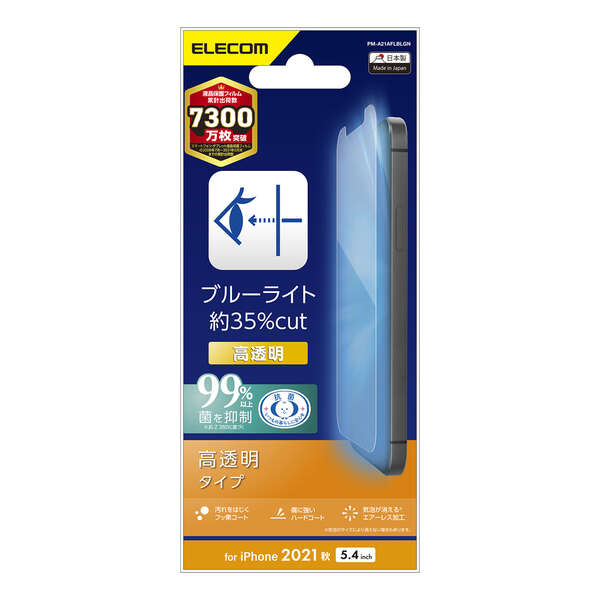 iPhone 13 miniの液晶画面をキズや汚れから守る、指紋防止、ブルーライトカット、高透明タイプの液晶保護フィルムです。