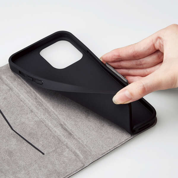 本体の薄さ、軽さを損ねない薄型・超軽量なウルトラスリムタイプのiPhone 13 Pro Max用ソフトレザーケース(手帳型)です。